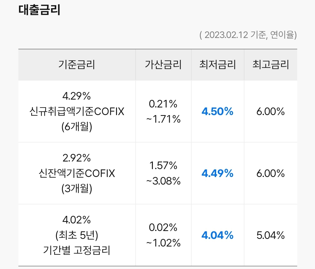케이뱅크 아파트 담보 대출의 대출금리 입니다.