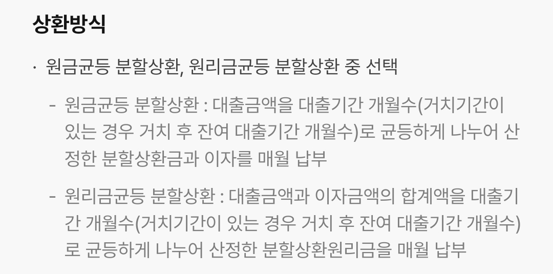케이뱅크 아파트 담보 대출의 상환방식 입니다.