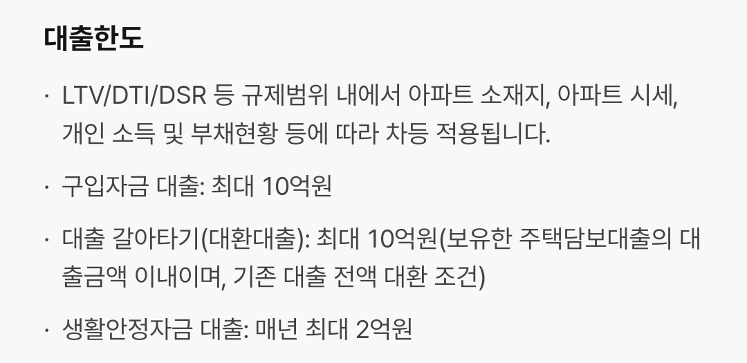 케이뱅크 아파트 담보 대출 상품의 대출 한도입니다.
